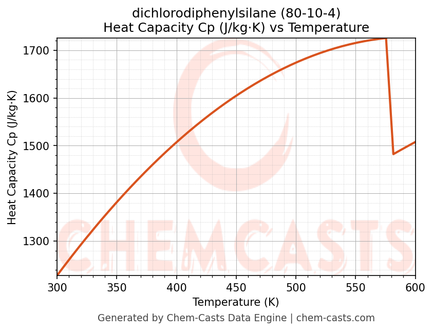 - Specific heat capacity (Cp) indicates the amount of energy required to raise the temperature of dichlorodiphenylsilane and is critical for energy balance and heat-exchanger design.