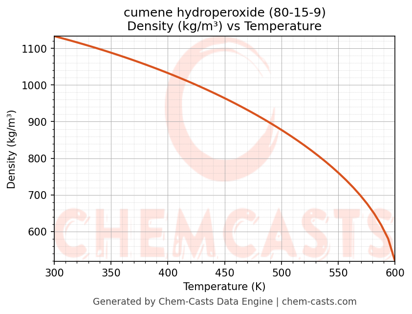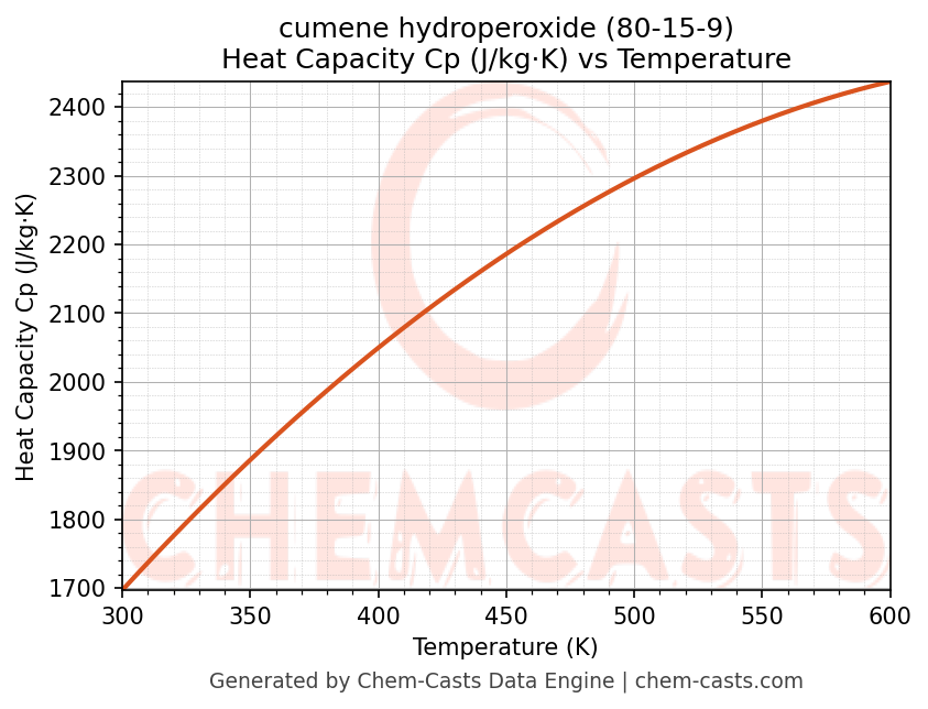 - Specific heat capacity (Cp) indicates the amount of energy required to raise the temperature of cumene hydroperoxide and is critical for energy balance and heat-exchanger design.
