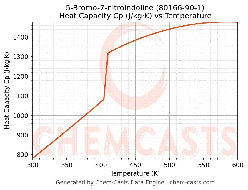 - Specific heat capacity (Cp) indicates the amount of energy required to raise the temperature of 5-Bromo-7-nitroindoline and is critical for energy balance and heat-exchanger design.