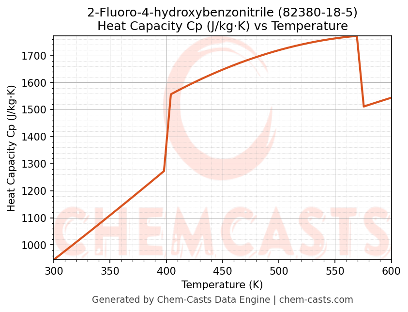 - Specific heat capacity (Cp) indicates the amount of energy required to raise the temperature of 2-Fluoro-4-hydroxybenzonitrile and is critical for energy balance and heat-exchanger design.