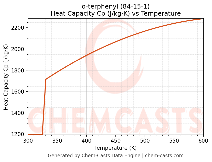 - Specific heat capacity (Cp) indicates the amount of energy required to raise the temperature of o-terphenyl and is critical for energy balance and heat-exchanger design.
