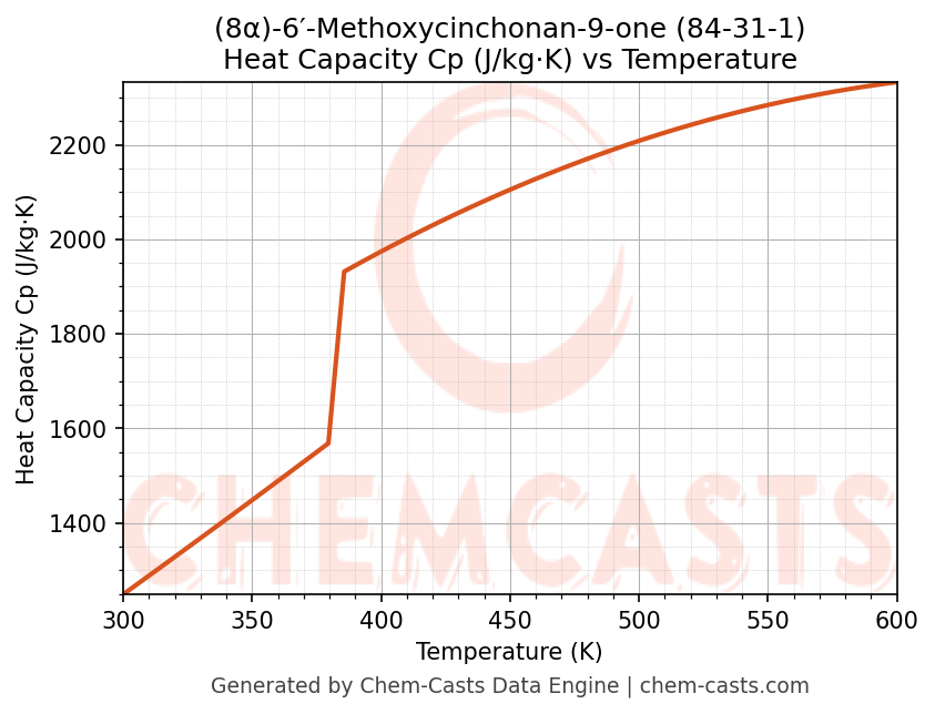- Specific heat capacity (Cp) indicates the amount of energy required to raise the temperature of (8α)-6′-Methoxycinchonan-9-one and is critical for energy balance and heat-exchanger design.
