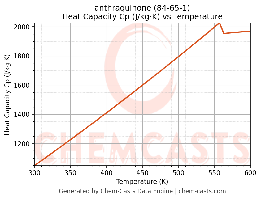 - Specific heat capacity (Cp) indicates the amount of energy required to raise the temperature of anthraquinone and is critical for energy balance and heat-exchanger design.