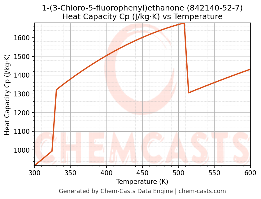 - Specific heat capacity (Cp) indicates the amount of energy required to raise the temperature of 1-(3-Chloro-5-fluorophenyl)ethanone and is critical for energy balance and heat-exchanger design.
