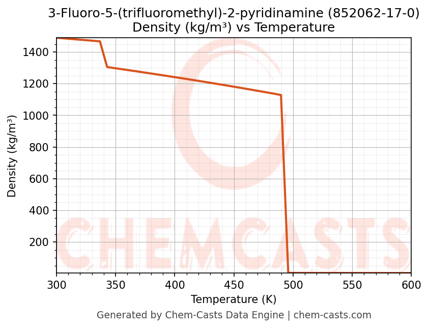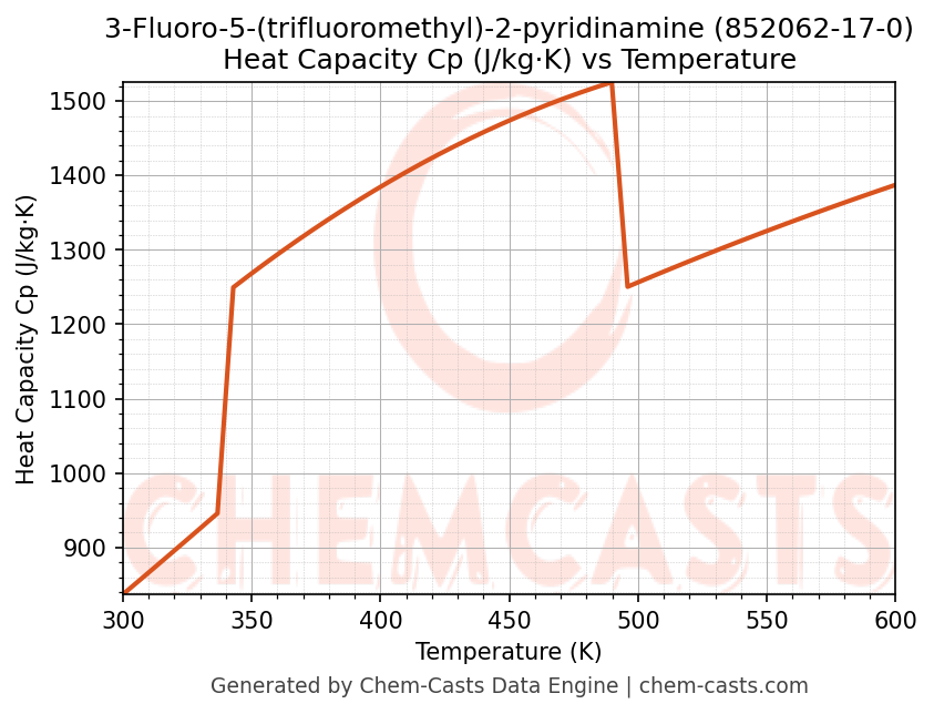 This page presents the temperature-dependent thermodynamic and transport properties of 3-Fluoro-5-(trifluoromethyl)-2-pyridinamine (CAS 852062-17-0) calculated at a constant pressure of 1 atm (101325 Pa) over the temperature range 250-500 K.