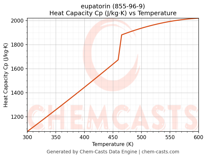 - Specific heat capacity (Cp) indicates the amount of energy required to raise the temperature of eupatorin and is critical for energy balance and heat-exchanger design.