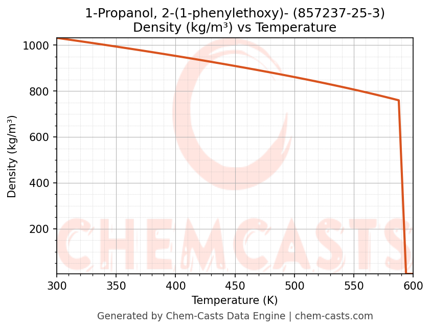 - Specific heat capacity (Cp) indicates the amount of energy required to raise the temperature of 1-Propanol, 2-(1-phenylethoxy)- and is critical for energy balance and heat-exchanger design.