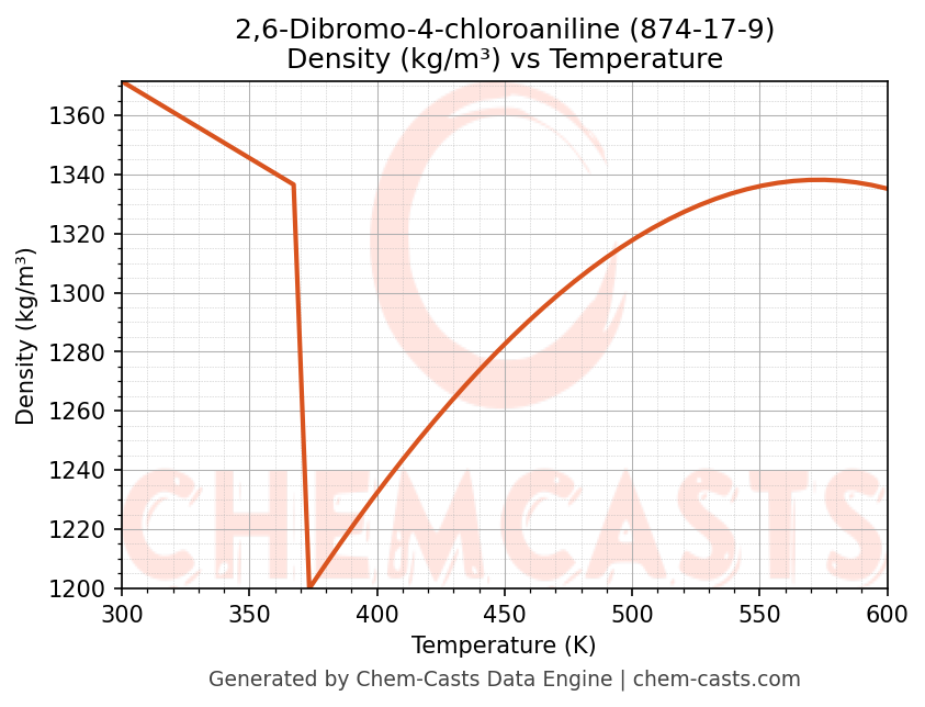 This page presents the temperature-dependent thermodynamic and transport properties of 2,6-Dibromo-4-chloroaniline (CAS 874-17-9) calculated at a constant pressure of 1 atm (101325 Pa) over the temperature range 250-500 K.