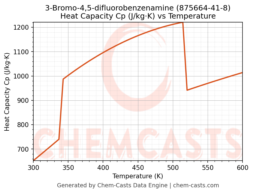 - Specific heat capacity (Cp) indicates the amount of energy required to raise the temperature of 3-Bromo-4,5-difluorobenzenamine and is critical for energy balance and heat-exchanger design.