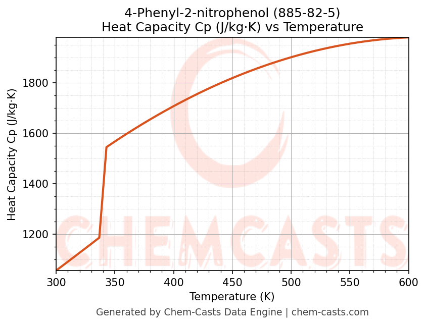 - Specific heat capacity (Cp) indicates the amount of energy required to raise the temperature of 4-Phenyl-2-nitrophenol and is critical for energy balance and heat-exchanger design.