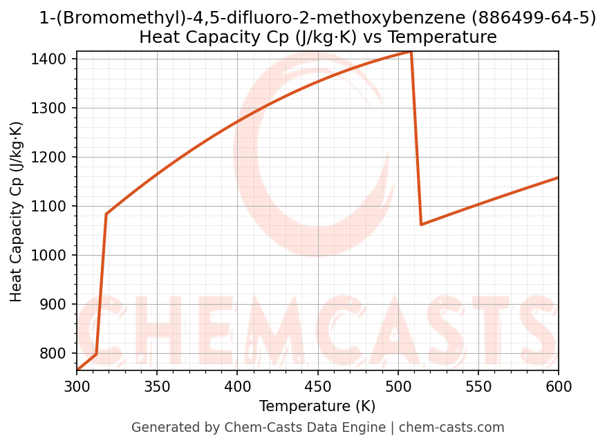 - Specific heat capacity (Cp) indicates the amount of energy required to raise the temperature of 1-(Bromomethyl)-4,5-difluoro-2-methoxybenzene and is critical for energy balance and heat-exchanger design.