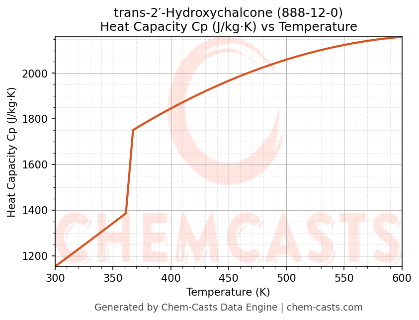 trans-2′-Hydroxychalcone Thermodynamic Properties vs Temperature (CAS 888-12-0)