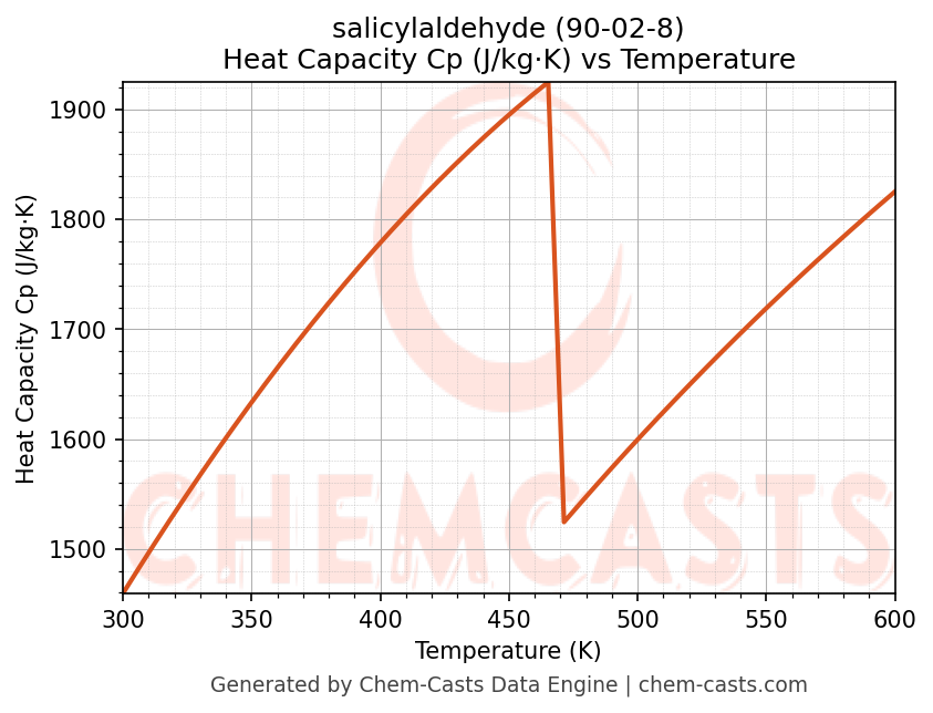 - Specific heat capacity (Cp) indicates the amount of energy required to raise the temperature of salicylaldehyde and is critical for energy balance and heat-exchanger design.