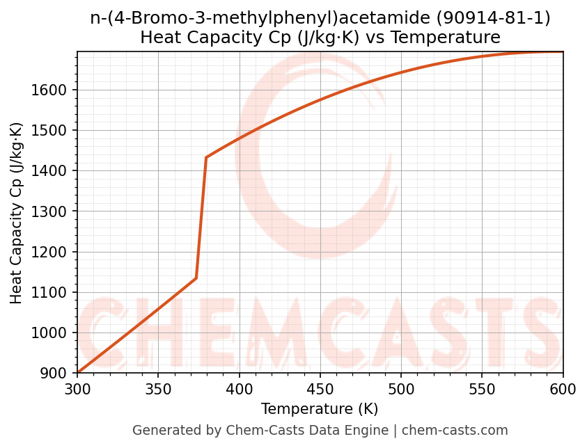 - Specific heat capacity (Cp) indicates the amount of energy required to raise the temperature of n-(4-Bromo-3-methylphenyl)acetamide and is critical for energy balance and heat-exchanger design.