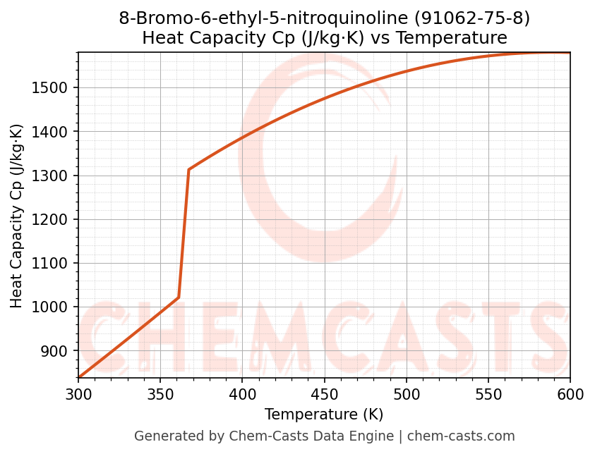 - Specific heat capacity (Cp) indicates the amount of energy required to raise the temperature of 8-Bromo-6-ethyl-5-nitroquinoline and is critical for energy balance and heat-exchanger design.