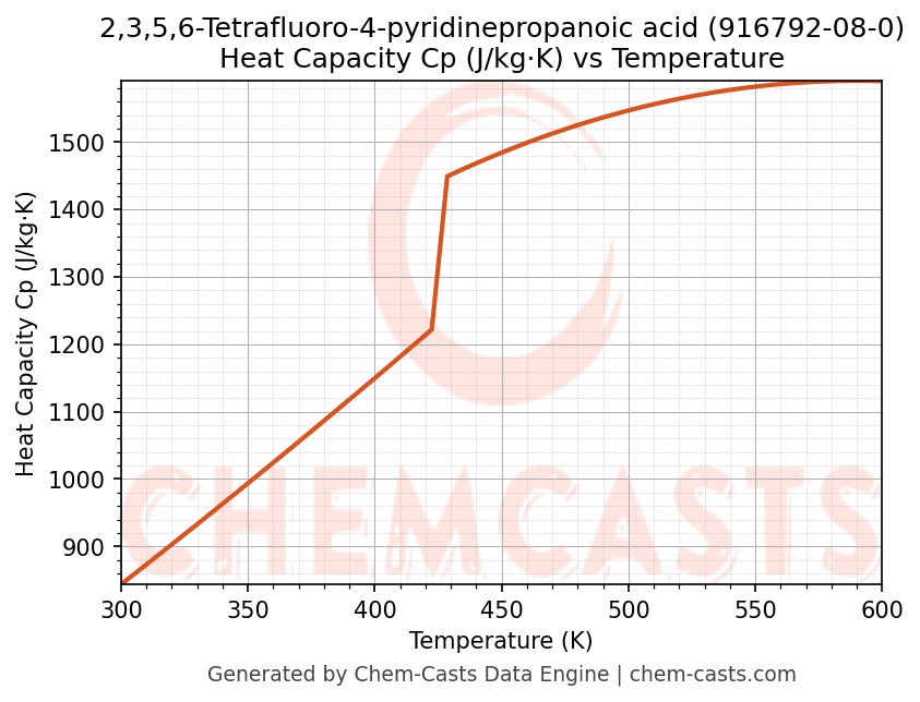 - Specific heat capacity (Cp) indicates the amount of energy required to raise the temperature of 2,3,5,6-Tetrafluoro-4-pyridinepropanoic acid and is critical for energy balance and heat-exchanger design.