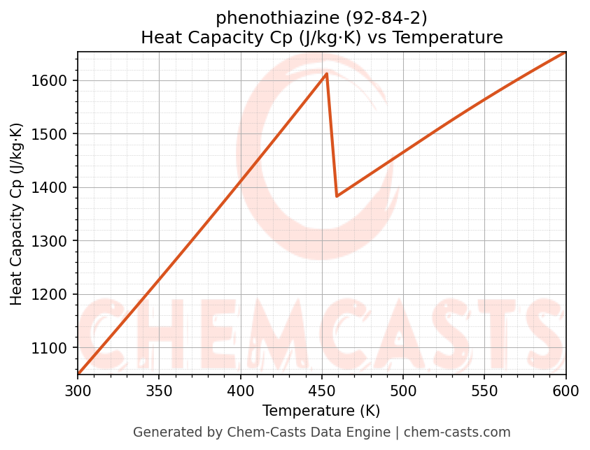 - Specific heat capacity (Cp) indicates the amount of energy required to raise the temperature of phenothiazine and is critical for energy balance and heat-exchanger design.