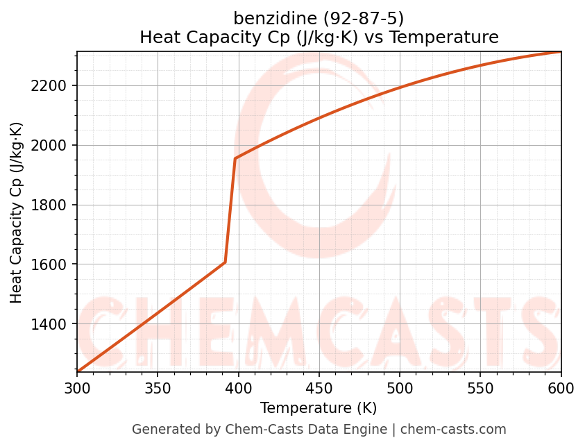 - Specific heat capacity (Cp) indicates the amount of energy required to raise the temperature of benzidine and is critical for energy balance and heat-exchanger design.