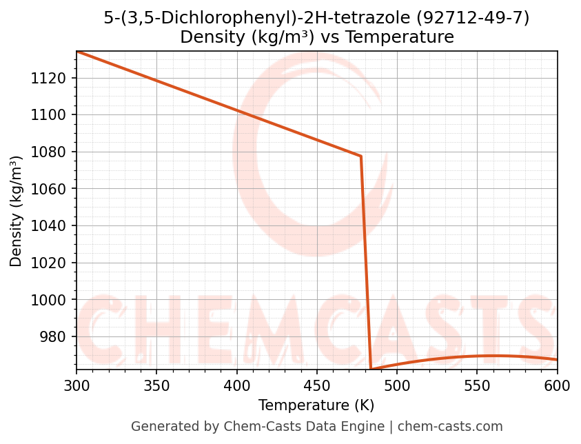 This page presents the temperature-dependent thermodynamic and transport properties of 5-(3,5-Dichlorophenyl)-2H-tetrazole (CAS 92712-49-7) calculated at a constant pressure of 1 atm (101325 Pa) over the temperature range 250-500 K.
