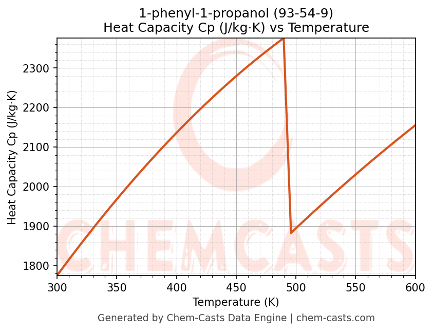 - Specific heat capacity (Cp) indicates the amount of energy required to raise the temperature of 1-phenyl-1-propanol and is critical for energy balance and heat-exchanger design.
