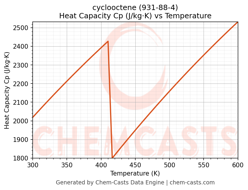 - Specific heat capacity (Cp) indicates the amount of energy required to raise the temperature of cyclooctene and is critical for energy balance and heat-exchanger design.