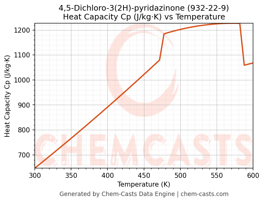 - Specific heat capacity (Cp) indicates the amount of energy required to raise the temperature of 4,5-Dichloro-3(2H)-pyridazinone and is critical for energy balance and heat-exchanger design.