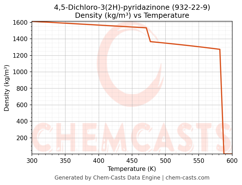 This page presents the temperature-dependent thermodynamic and transport properties of 4,5-Dichloro-3(2H)-pyridazinone (CAS 932-22-9) calculated at a constant pressure of 1 atm (101325 Pa) over the temperature range 250-500 K.