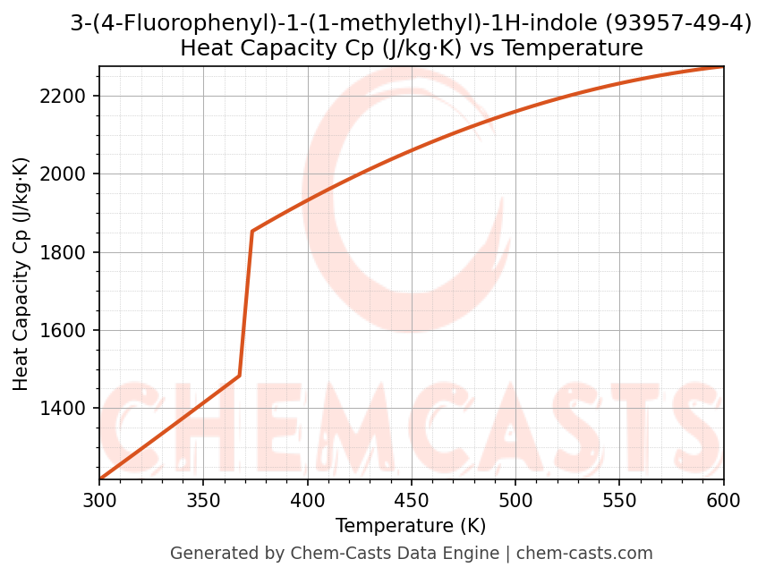 - Specific heat capacity (Cp) indicates the amount of energy required to raise the temperature of 3-(4-Fluorophenyl)-1-(1-methylethyl)-1H-indole and is critical for energy balance and heat-exchanger design.