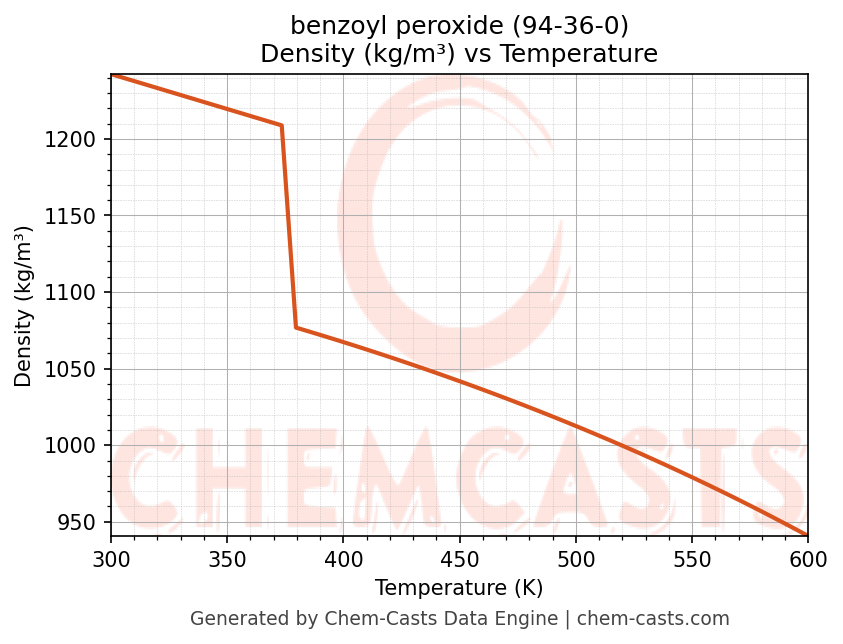 - Specific heat capacity (Cp) indicates the amount of energy required to raise the temperature of benzoyl peroxide and is critical for energy balance and heat-exchanger design.
