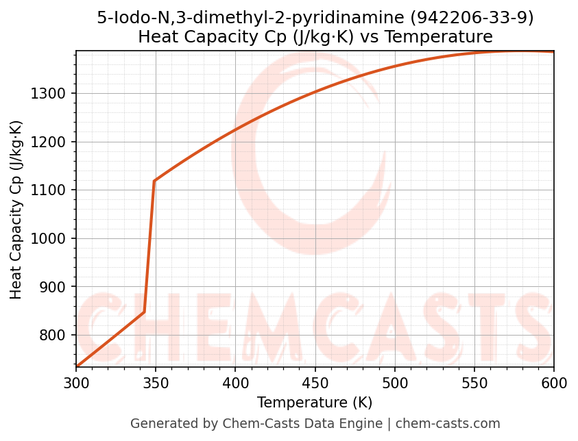 - Specific heat capacity (Cp) indicates the amount of energy required to raise the temperature of 5-Iodo-N,3-dimethyl-2-pyridinamine and is critical for energy balance and heat-exchanger design.