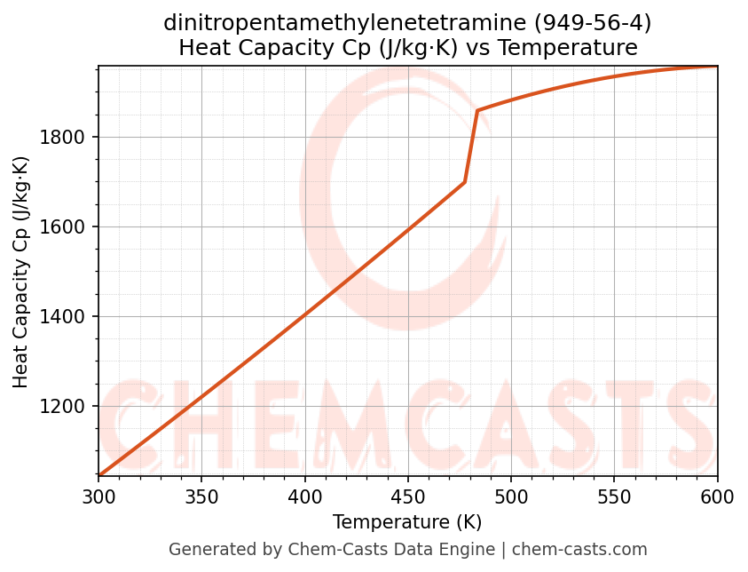 - Specific heat capacity (Cp) indicates the amount of energy required to raise the temperature of dinitropentamethylenetetramine and is critical for energy balance and heat-exchanger design.