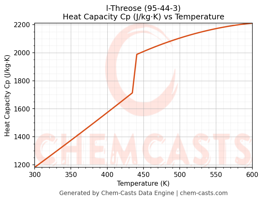 - Specific heat capacity (Cp) indicates the amount of energy required to raise the temperature of l-Threose and is critical for energy balance and heat-exchanger design.