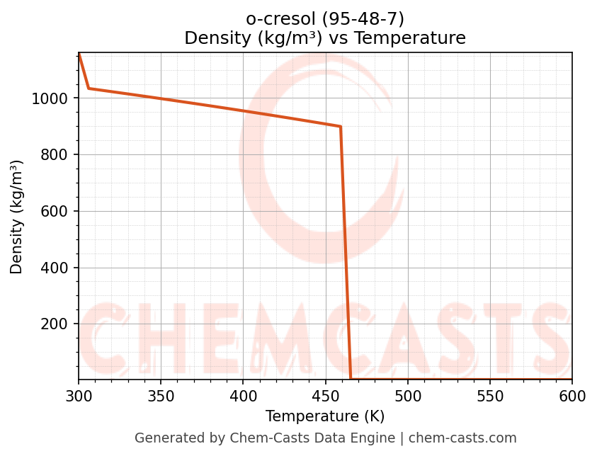 - Specific heat capacity (Cp) indicates the amount of energy required to raise the temperature of o-cresol and is critical for energy balance and heat-exchanger design.