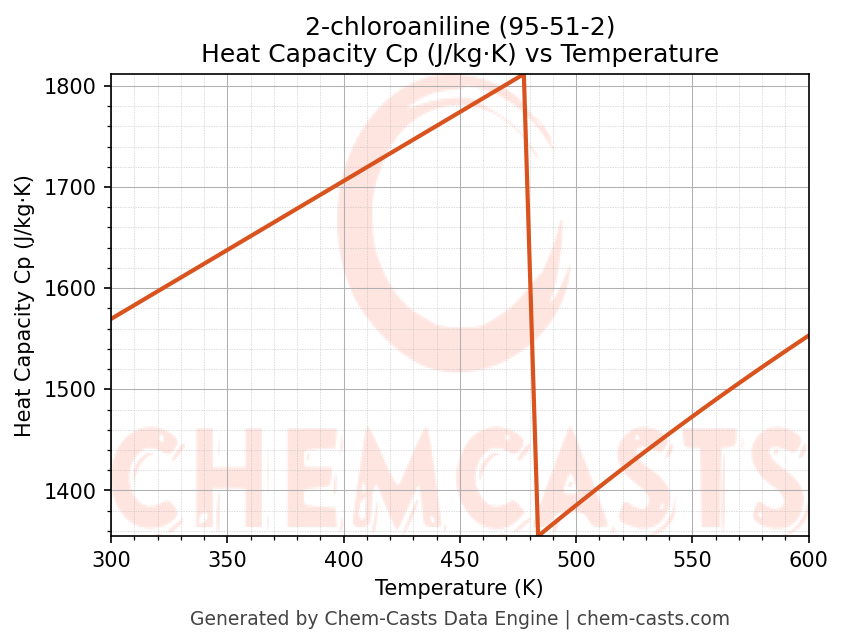 - Specific heat capacity (Cp) indicates the amount of energy required to raise the temperature of 2-chloroaniline and is critical for energy balance and heat-exchanger design.