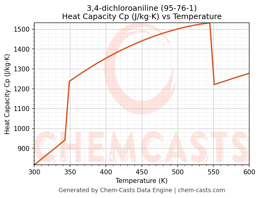 - Specific heat capacity (Cp) indicates the amount of energy required to raise the temperature of 3,4-dichloroaniline and is critical for energy balance and heat-exchanger design.