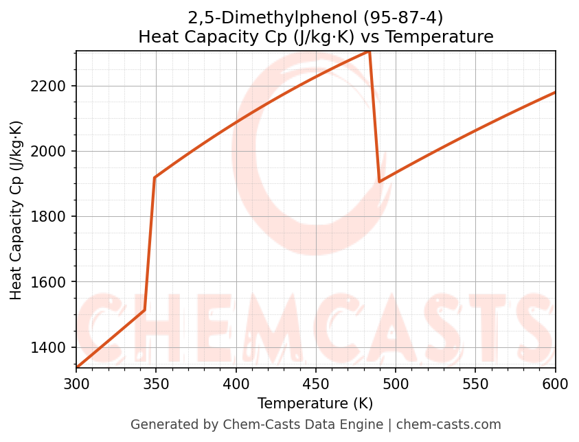 - Specific heat capacity (Cp) indicates the amount of energy required to raise the temperature of 2,5-Dimethylphenol and is critical for energy balance and heat-exchanger design.