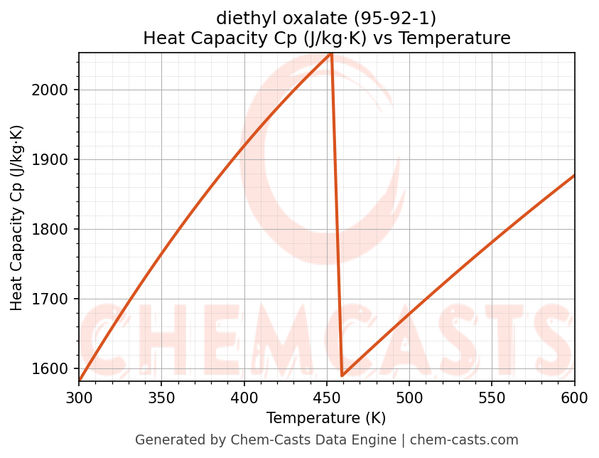 - Specific heat capacity (Cp) indicates the amount of energy required to raise the temperature of diethyl oxalate and is critical for energy balance and heat-exchanger design.