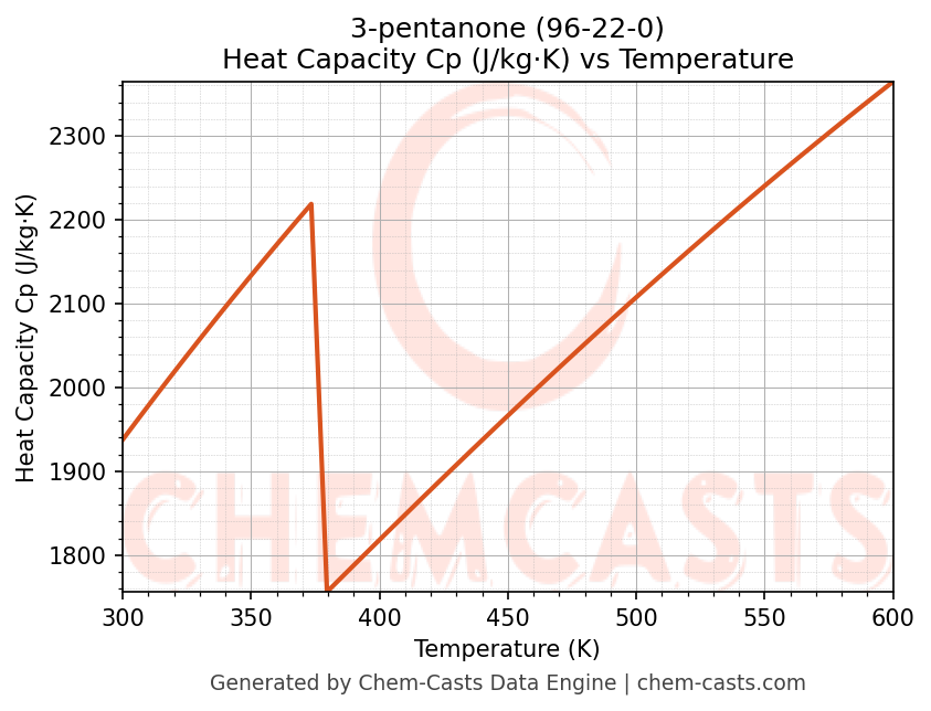 - Specific heat capacity (Cp) indicates the amount of energy required to raise the temperature of 3-pentanone and is critical for energy balance and heat-exchanger design.