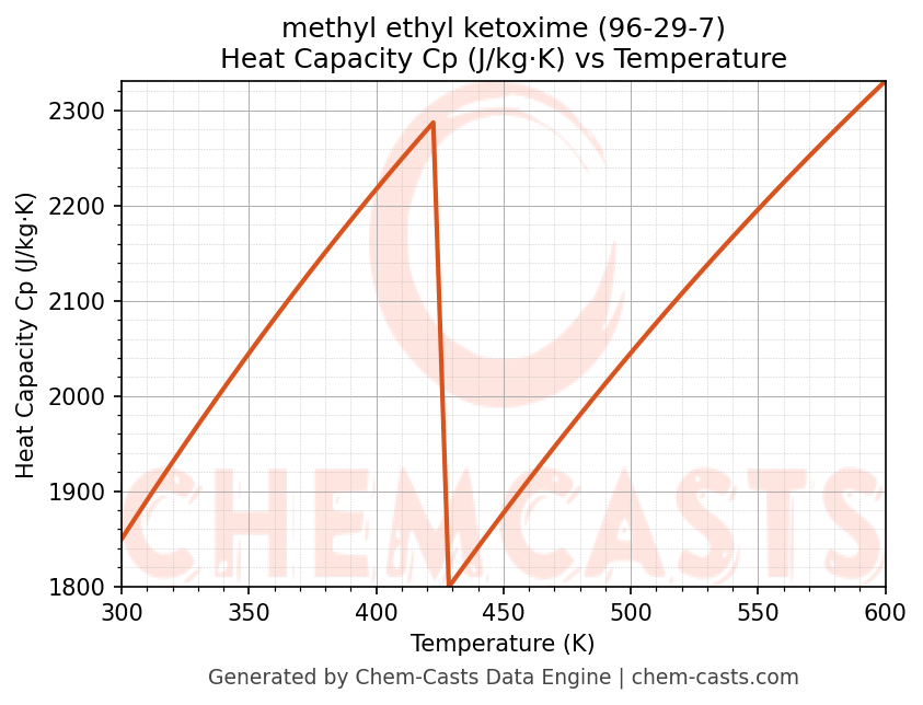 - Specific heat capacity (Cp) indicates the amount of energy required to raise the temperature of methyl ethyl ketoxime and is critical for energy balance and heat-exchanger design.