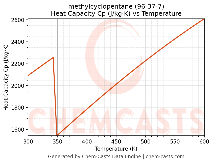 - Specific heat capacity (Cp) indicates the amount of energy required to raise the temperature of methylcyclopentane and is critical for energy balance and heat-exchanger design.
