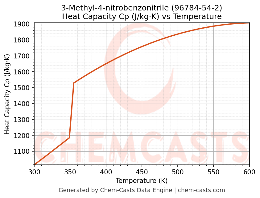 - Specific heat capacity (Cp) indicates the amount of energy required to raise the temperature of 3-Methyl-4-nitrobenzonitrile and is critical for energy balance and heat-exchanger design.