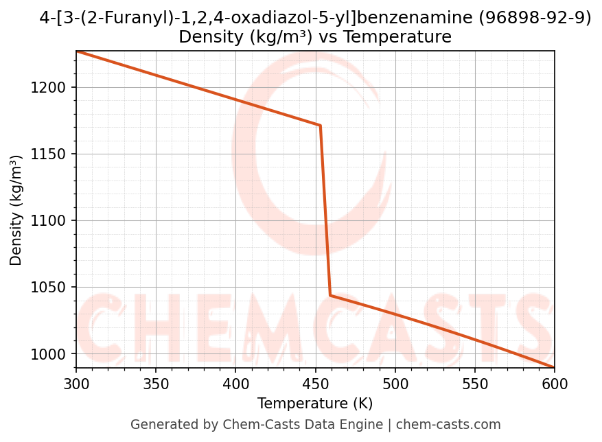 ![Density vs Temperature chart for 4-[3-(2-Furanyl)-1,2,4-oxadiazol-5-yl]benzenamine (CAS 96898-92-9)](https://chemcasts-prod.s3.ap-south-1.amazonaws.com/chem_plots_pconst/96898-92-9-density.png)