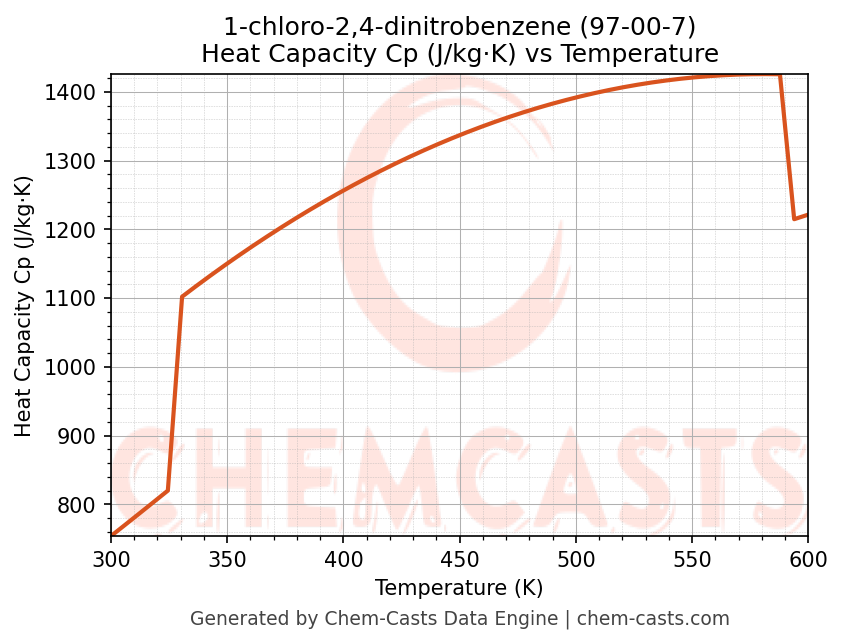 - Specific heat capacity (Cp) indicates the amount of energy required to raise the temperature of 1-chloro-2,4-dinitrobenzene and is critical for energy balance and heat-exchanger design.