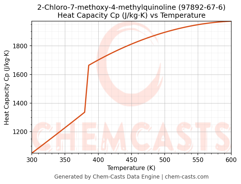 - Specific heat capacity (Cp) indicates the amount of energy required to raise the temperature of 2-Chloro-7-methoxy-4-methylquinoline and is critical for energy balance and heat-exchanger design.