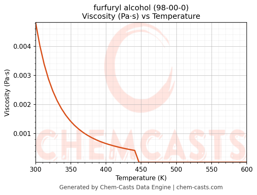 - Specific heat capacity (Cp) indicates the amount of energy required to raise the temperature of furfuryl alcohol and is critical for energy balance and heat-exchanger design.