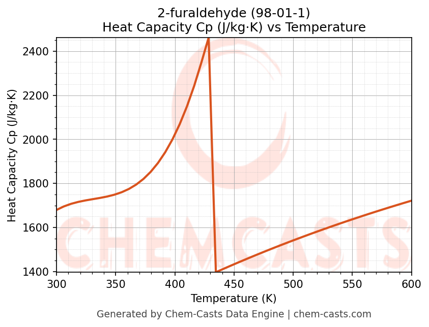 - Specific heat capacity (Cp) indicates the amount of energy required to raise the temperature of 2-furaldehyde and is critical for energy balance and heat-exchanger design.