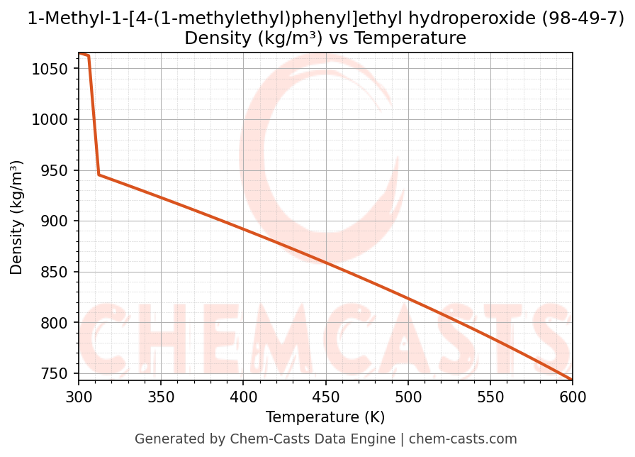 ![Density vs Temperature chart for 1-Methyl-1-[4-(1-methylethyl)phenyl]ethyl hydroperoxide (CAS 98-49-7)](https://chemcasts-prod.s3.ap-south-1.amazonaws.com/chem_plots_pconst/98-49-7-density.png)