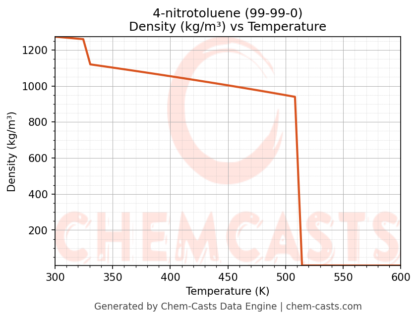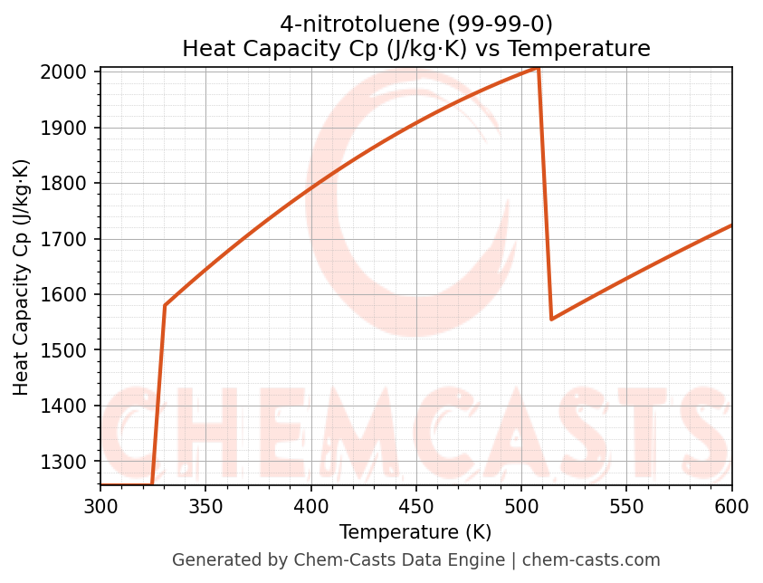 - Specific heat capacity (Cp) indicates the amount of energy required to raise the temperature of 4-nitrotoluene and is critical for energy balance and heat-exchanger design.