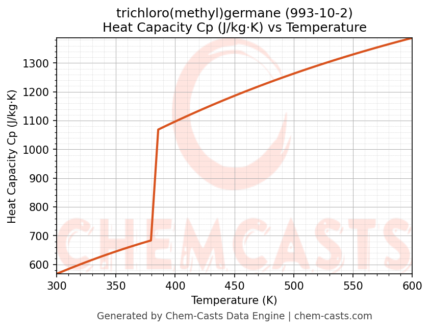 - Specific heat capacity (Cp) indicates the amount of energy required to raise the temperature of trichloro(methyl)germane and is critical for energy balance and heat-exchanger design.