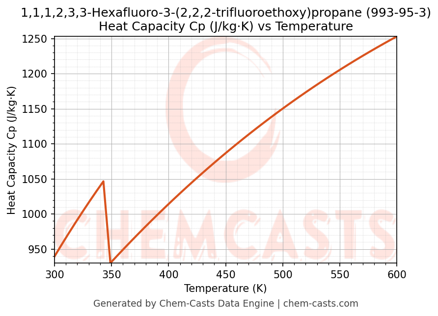 - Specific heat capacity (Cp) indicates the amount of energy required to raise the temperature of 1,1,1,2,3,3-Hexafluoro-3-(2,2,2-trifluoroethoxy)propane and is critical for energy balance and heat-exchanger design.